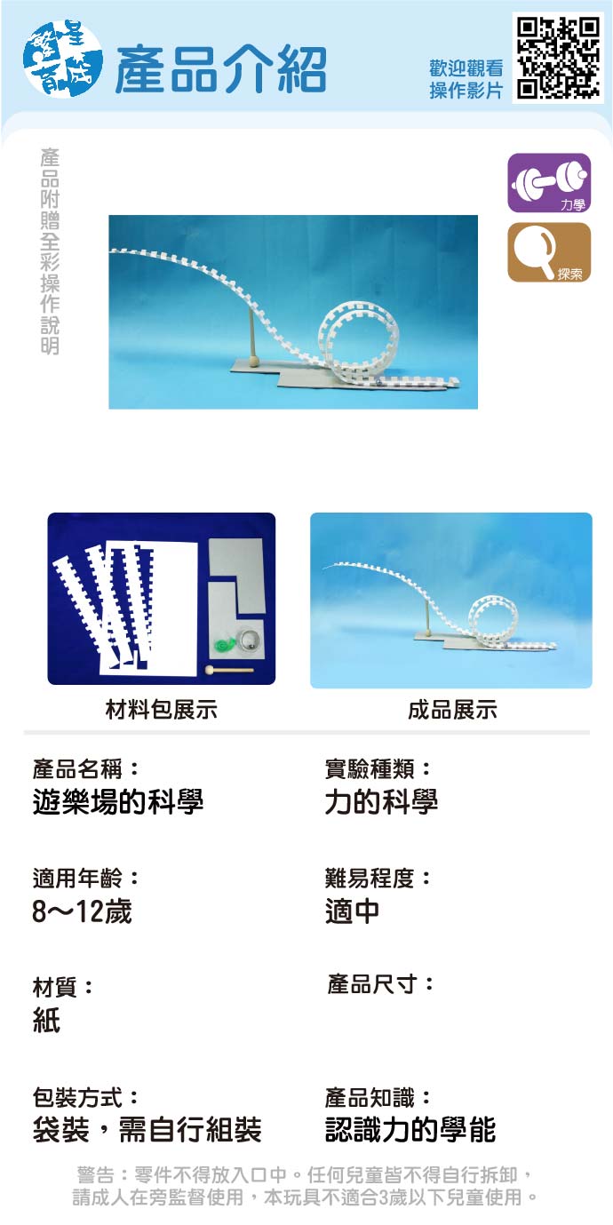遊樂場的科學 產品編號:K004-2 原價 100 75 ✦ 知識目標 1. 認識力學守恆原理。 2. 了解動能與位能的互換關係。 ✦ 素養目標 1. 透過探討自然與物質世界的規律性,感受發現的樂趣。 2. 透過動手實作,享受以成品來表現自己構想的樂趣。 課程建議時間:90分鐘 適用年齡:8-12歲 規格 組 -- 75元 數量 - + 加入購物車 立即結帳 上一筆 回到列表 下一筆