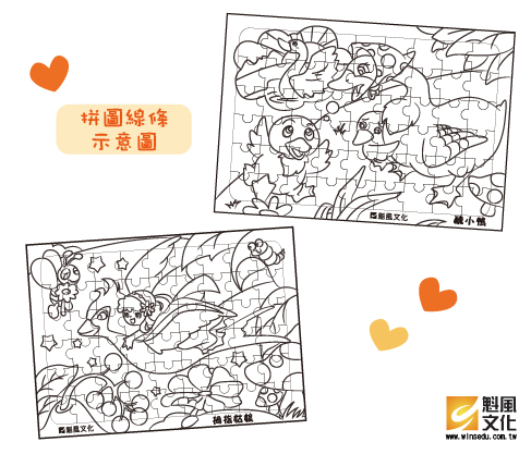 1. 最低量A4*500份. ( 以100份為增加數量) 2. 為單色(黑色)線條印刷. 3. 均為OPP袋單份包裝. 4. 拼圖片數70片! 5. 確認訂單後只要25天就能交貨! 適合各行銷、推廣、親子日活動,及紀念品發送哦! (價錢以實際數量規格報價為主,網上為參考價!) 感謝各大活動公關公司、政府機關單位、休閒農場、企業家庭活動日需求單位的支持! 魁風文化團隊~~~ 專業客製化的服務,肯定讓大家滿意又放心!