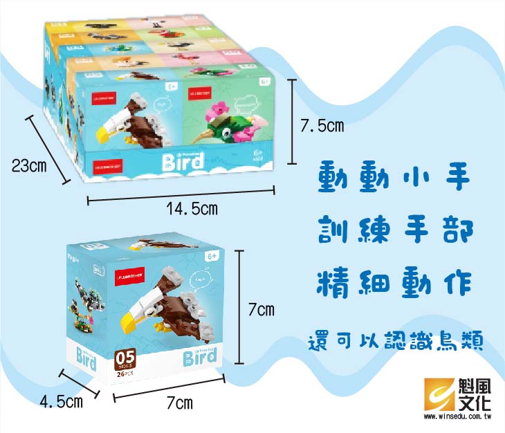 飛鳥樂園積木,10種不同的鳥類組裝的過程中認識各種鳥類的特徵10小盒還可以拼成1個大的不同積木唷! 尺寸:外盒約:23x14x7.5cm         小盒約:7x4.5x7cm     &