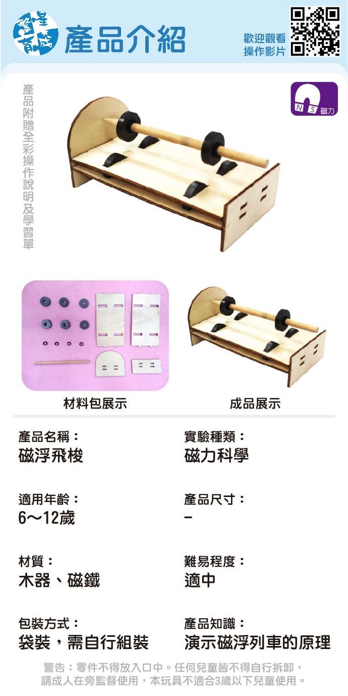 磁浮飛梭 產品編號:KS01205 原價 100 75 ✦ 知識目標 1. 了解磁鐵特性。 2. 認識磁浮列車的原理。 ✦ 素養目標 1. 保持對自然現象的好奇心,透過不斷的探尋和提問,常會有新發現。 課程建議時間:90分鐘 適用年齡:8-12歲 規格 組 -- 75元 數量 - + 加入購物車 立即結帳 上一筆 回到列表 下一筆