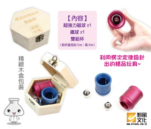 慢速掉落磁球 產品編號:KB-031 原價 2000 1500 鋁杯*2(直徑約5公分 高度約6公分) 超強力磁球*1 鐵球*1 精緻木盒包裝 內附超強磁球, 開箱使用須注意~~身旁有無怕磁性影響之物品 規格 份 -- 1500元 數量 - + 加入購物車 立即結帳 上一筆 回到列表