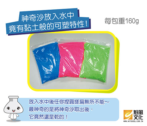 神奇沙 產品編號:KB-014 原價 200 150 每包約160克,可反覆利用! 神奇沙放入水中竟有黏土般的可塑特性 任你捏圓搓扁無所不能 最神奇的是將神奇沙取出後,他竟然還是乾的! 規格 份 -- 150元 數量 - + 加入購物車 立即結帳 上一筆 回到列表