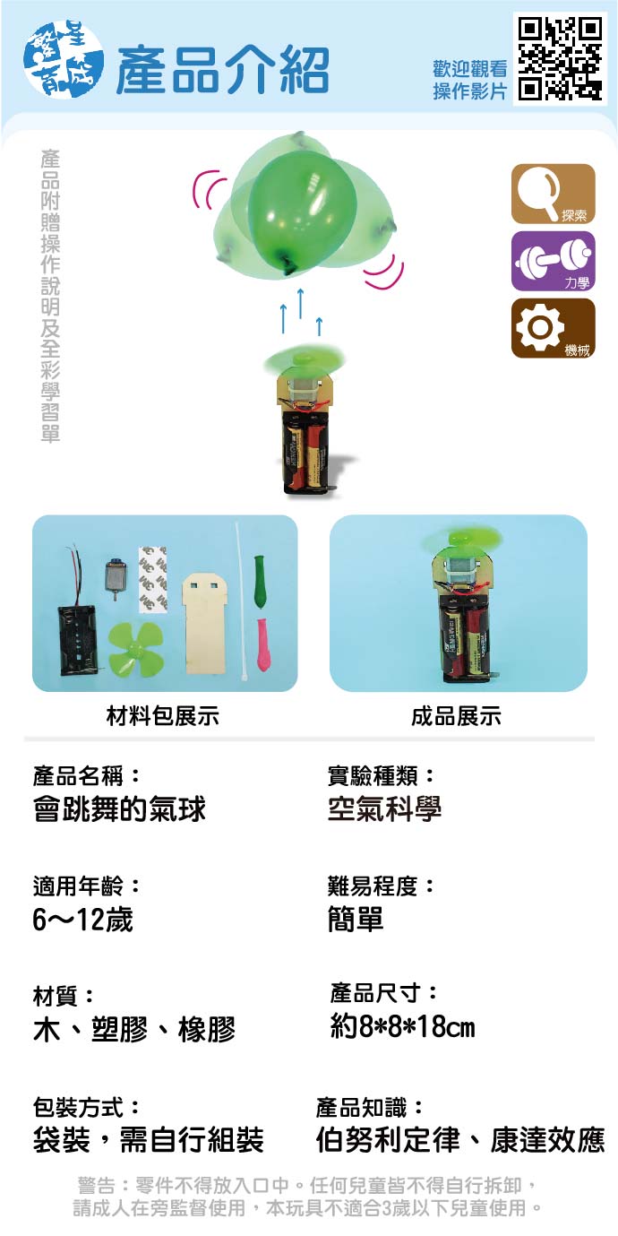 會跳舞的氣球 產品編號:K004-69 原價 90 68 ✦ 知識目標 1. 認識伯努力原理。 2. 了解康達效應。 ✦ 素養目標 1. 透過科學探究活動,了解科學知識的基礎是來自於真實的經驗和證據。 2. 利用科學知識理解日常生活觀察到的現象。 課程建議時間:90分鐘 適用年齡:8-12歲 規格 組 -- 68元 數量 - + 加入購物車 立即結帳 上一筆 回到列表 下一筆