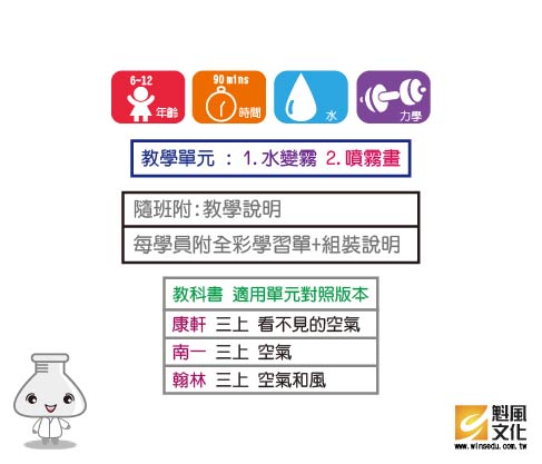 針筒水壓機 產品編號:K004-59 原價 80 60 ✦ 知識目標 1. 認識噴霧效果的原理。 2. 製作針筒水壓機。 ✦ 素養目標 1. 透過動手實作,享受以成品來表現自己構想的樂趣。 2. 能簡單分辨或分類所觀察到的自然科學現象。 課程建議時間:90分鐘 適用年齡:8-12歲 規格 組 -- 60元 數量 - + 加入購物車 立即結帳 回到列表 下一筆