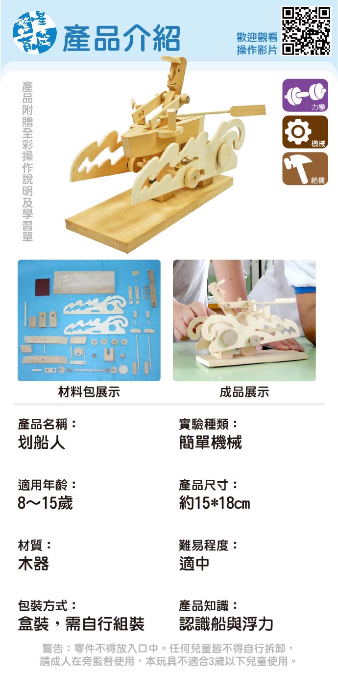 划船人 產品編號:KS010 原價 160 120 ✦ 知識目標 1. 認識簡單機械的結構與功能。 2. 應用簡單機械完成划船人模型。 ✦ 素養目標 能應用科學知識、方法與態度於日常生活當中。 課程建議時間:90分鐘 適用年齡:8-15歲 規格 組 -- 120元 數量 - + 加入購物車 立即結帳 上一筆 回到列表 下一筆
