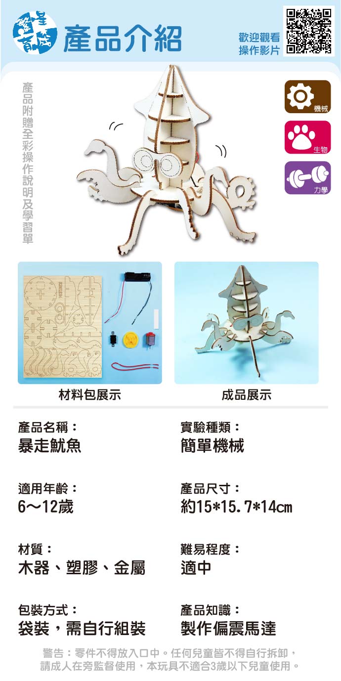 暴走魷魚 產品編號:KS01234 原價 120 90 ✦ 知識目標 1. 了解振動的原理及應用。 2. 認識軟體動物的分類及特色。 ✦ 素養目標 透過動手實作,享受以成品來表現自己構想的樂趣。 課程建議時間:90分鐘 適用年齡:8-12歲 規格 組 -- 90元 數量 - + 加入購物車 立即結帳 上一筆 回到列表 下一筆