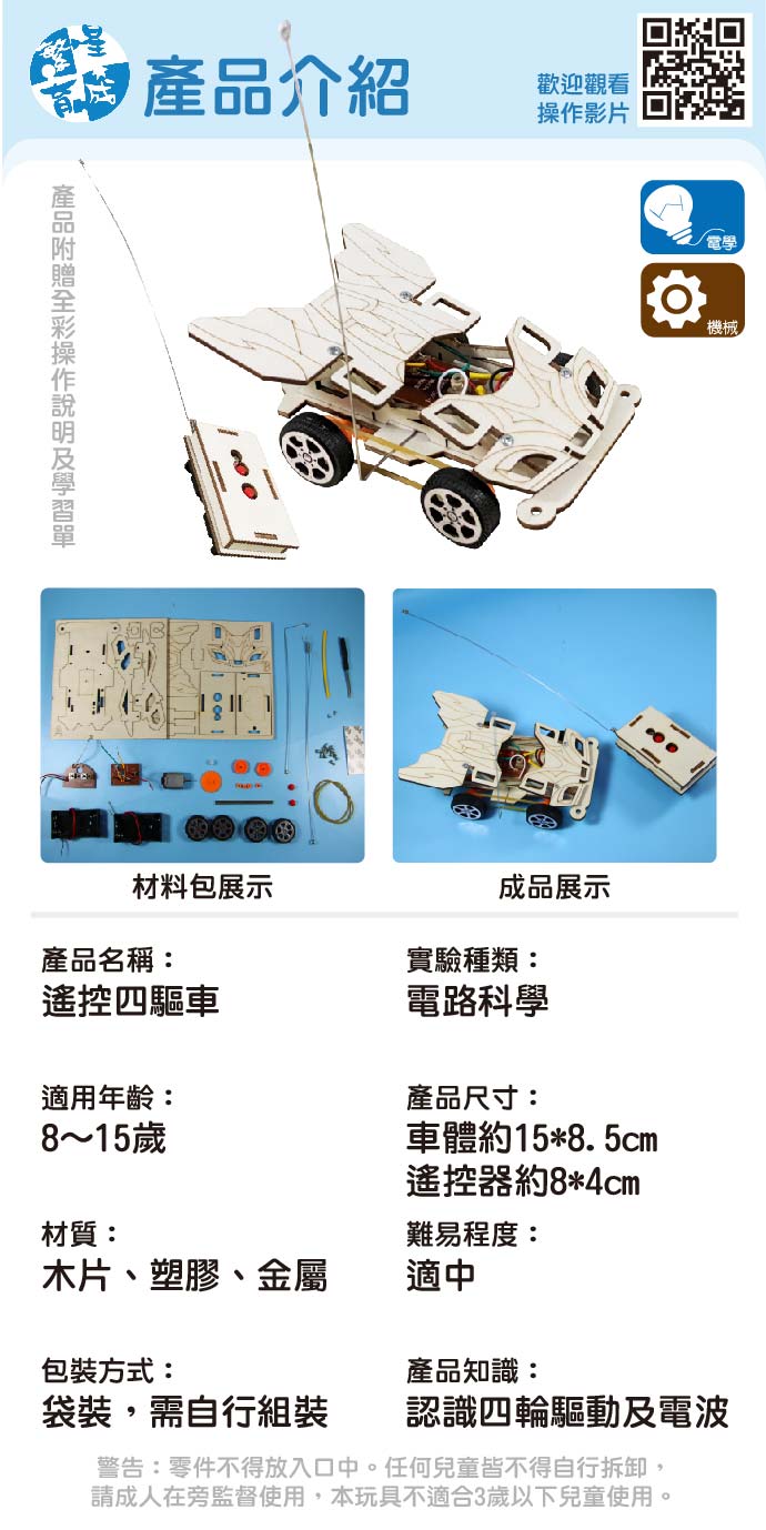 遙控四驅車 產品編號:KS01254 原價 240 180 ✦ 知識目標 1. 認識遙控的原理。 2. 認識電磁波。 3. 了解四輪驅動於生活上的運用。 ✦ 素養目標 透過動手實作,享受以成品來表現自己構想的樂趣。 課程建議時間:90分鐘 適用年齡:6-12歲 規格 組 -- 180元 數量 - + 加入購物車 立即結帳 上一筆 回到列表 下一筆