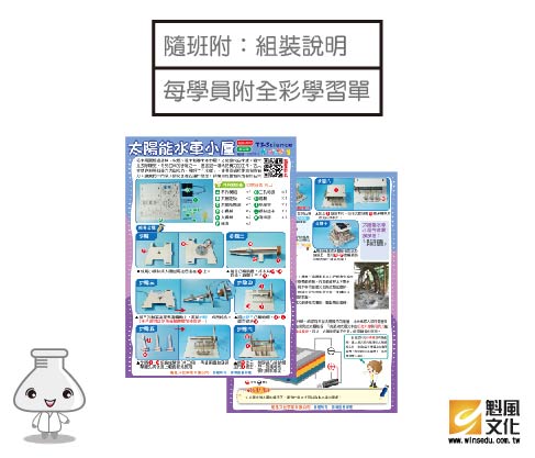 太陽能水車小屋 產品編號:KS014-3 原價 240 180 ✦ 知識目標 1.了解太陽能及其應用。 2.認識舂米及水碓舂米的功能。 ✦ 素養目標 透過科學探究活動,了解科學知識的基礎是來自於真實的經驗和證據。 課程建議時間:90分鐘 適用年齡:8-12歲 規格 組 -- 180元 數量 - + 加入購物車 立即結帳 上一筆 回到列表 下一筆