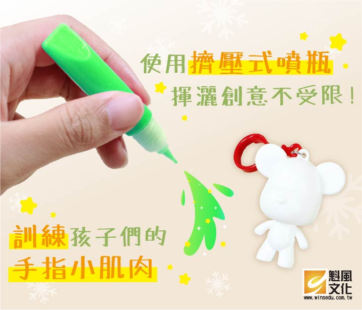 簡單操作就能創造出獨一無二流體熊~桌巾、手套、圍裙、紙盤、紙杯配件一應俱全!盡情快樂創作soeasy~ 尺寸:主體為5.5x4x7cm內容:熊、蝴蝶結、鈴鐺、顏料、畫筆、燈泡扣、紙杯、紙盤、桌巾、手套、圍裙