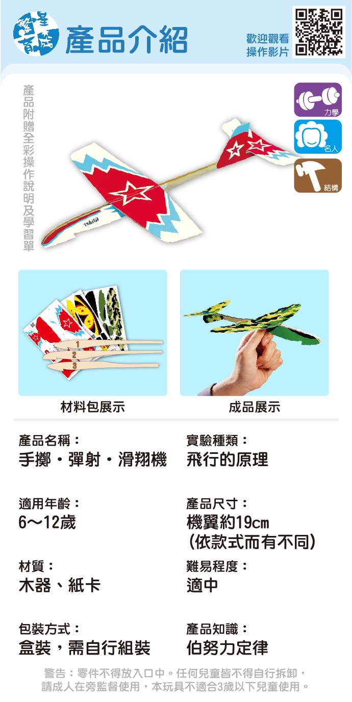 手擲‧彈射‧滑翔機 產品編號:KE011 原價 120 90 ✦ 知識目標 1. 認識飛行歷史。 2. 了解滑翔機飛機飛行技巧。 ✦ 素養目標 1. 保持對自然現象的好奇心,透過不斷的探尋和提問,常會有新發現。 2. 利用科學知識理解日常生活觀察到的現象。 課程建議時間:90分鐘 適用年齡:6-12歲 規格 組 -- 90元 數量 - + 加入購物車 立即結帳 回到列表 下一筆