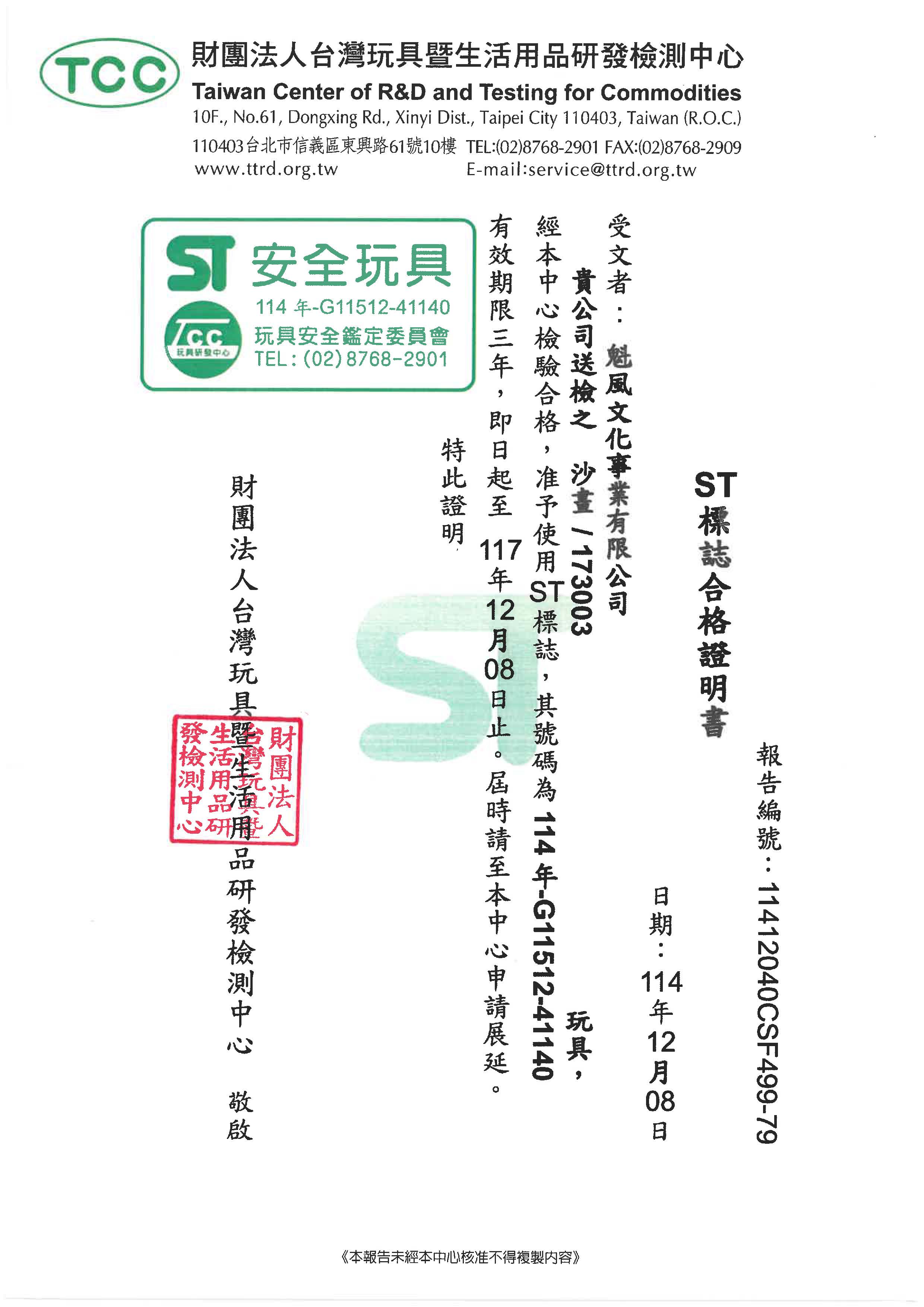 • 產品檢驗證明證號