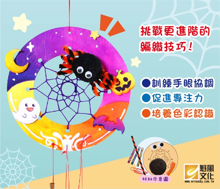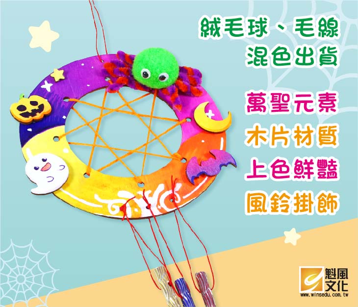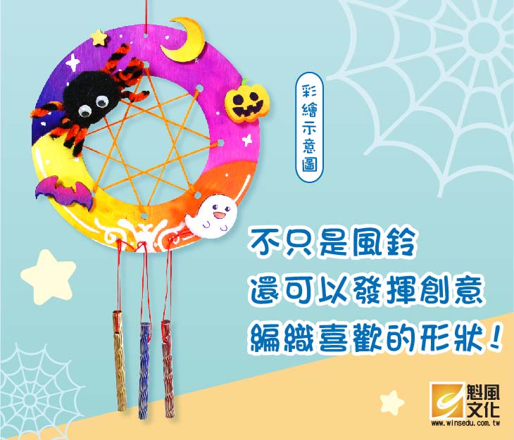 內容:木片、絨毛球、毛根、毛線、活動眼、線、風鈴管 / 黏貼、彩繪